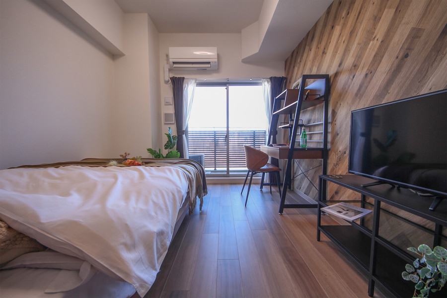 温かみのあるウッディー調を基調とした内装に、ブラウンの家具を配置したおしゃれな室内。プライベート感のあるウッド調のバルコニーで、普段の疲れを癒してみてはいかがでしょうか。